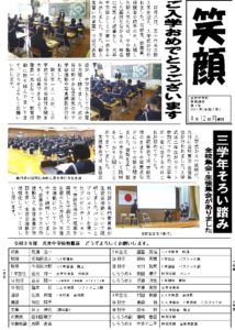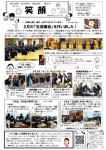 笑顔①を掲載しました。下記の画像をクリックしてご覧ください。令和3年度第一号です。