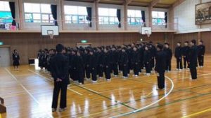 卒業式の練習 未分類 2017.03.01 卒業式が近づいてきました。3月に入り、給食配膳時間を利用して、生徒会主催による在校生の式歌の練習が始まりました。「先輩への感謝の気持ちを歌に込めよう」と、生徒会執行部が中心となって、練習計画を立て自主的に練習を進めています。