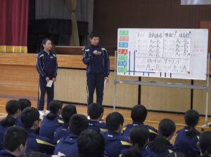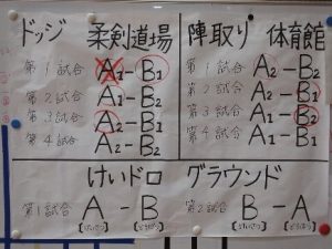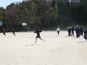 3月15日、5・6校時に2年生がクラスマッチを行いました。Ⅲ期の学級委員が企画し、ドッヂボール、陣取り、けいどろの3種目で2年A組対2年B組で競いました。結果は仲良く引き分けで終わり、楽しい思い出となりました。