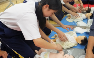 新生児室で、出生直後の赤ちゃんの見学、妊婦体験、赤ちゃん人形を使った抱っこ体験等を通して、生まれて間もない赤ちゃんを世話するときの大変さや気をつけなければいけないこと、命の重さについて学び、心から子どもを大切に思う親の気持ちに触れることができました。
