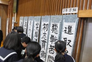 書き初め展を実施しました。新年を迎え「決意を新たに頑張ろう」という思いのこもった作品に心を打たれました。