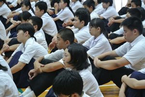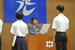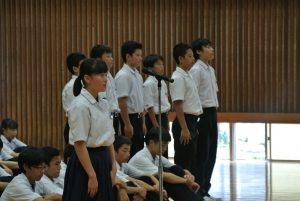 夏休みを前に、全校集会を行いました。校長先生から4月からの生活を振り返り、夏休みに向けてのお話をいただきました。生徒のみなさんの夏休みが充実したものになることを願っています。