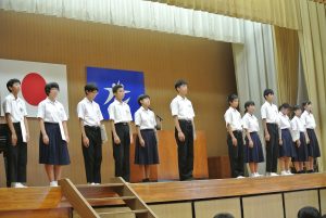 7月19日(金)5校時に、壮行式・表彰・全校集会を行いました。壮行式では、夏休みに行われる山口県選手権大会・通信陸上競技大会に出場する選手へエールを贈りました。各選手からは、試合に向けての意気込みが伝わってきました。