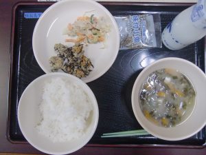 食育の日 未分類 2020.06.19 毎月19日は「食育の日」だそうです。健康で丈夫な体作りのために、またコロナウイルスに打ち勝つために、食は非常に大切です。食べることは大いなる楽しみでもありますが、自らの体作りという観点からも、おろそかにせずしっかり栄養摂取を行いたいものです。ということで、今日の給食は、とりたまひじき丼、キュウリとツナの和え物、海苔の味噌汁、小魚、牛乳という、いかにも栄養バランスばっちりなメニューでした。