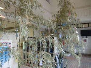 ところで、今日は七夕です。生徒会が中心となって七夕飾りを作成しているということを以前お伝えしましたが、この雨の中では外に出すわけにもいかず、玄関先に七夕飾りが佇んでいます。夜も、天の川を見ることはちょっと難しそうですが、せめて生徒の皆さんの願いが叶うことを祈っています。
