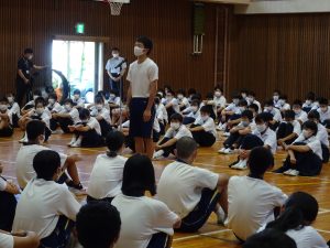 昨日放課後、生徒会主催による「3年生を激励する会」が開かれました。今年初となる市内大会を前に、出場する各部活動のキャプテンからあいさつをしてもらい、また文化部や社会体育部に所属する人たちからもコメントをしてもらいました。その後に、1,2年生代表の激励の言葉、3年生代表のお礼の言葉が続きました。3年生の思いがダイレクトに伝わってきて、とてもいい会になったように思います。どの部活動も「このままでは終われない」という思いが感じられ、それを聞いた下級生も、より闘志をかき立てられたことと思います。この雰囲気を大切にして、秋季大会を含めた今後の部活動等に一生懸命取り組んでいってほしいと思います。