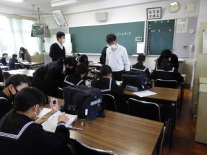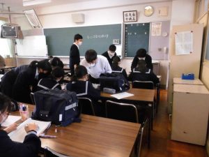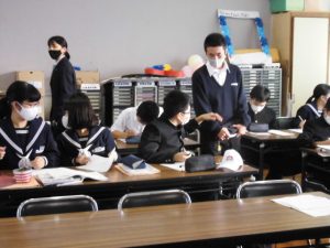 今日の放課後学習会には、初の試みとして、光高校から本校の卒業生を中心とする7名の生徒さんに学習ボランティアとして来ていただきました。高校の授業が終わってから急いで駆けつけてくれました。この取組は、光井中と光高校の中高連携、さらに両校のコミュニティ・スクール活動の一環として始めたものです。中学生に熱心に教えてくれる高校生の姿は、中学生にとって良いお手本となったことでしょう。