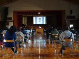 2年生恒例の行事である「立志のつどい」を行いました。2部構成で、第1部では生徒一人ひとりが、色紙にしたためた誓いの言葉を、自分の言葉で発表しました。思いは一人ひとりそれぞれでしたが、今日の立志のつどいのためにしっかり考えたことがうかがえました。