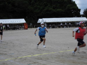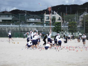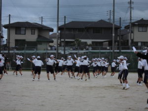 本校第75回体育祭を開催しました。前日から当日朝にかけてかなり雨が降ったので、グラウンドの状態が心配だったのですが、本校のグラウンドは本当に水はけがよく、問題なく体育祭を行うことができました。昨年度同様に、新型コロナ感染拡大防止のため、日程を午前中に縮小し、さらには観客も3年生の保護者・同居のご家族のみとさせていただくなど、かなり厳しい状況での開催でした。生徒の皆さんも、「マスク・軍手着用」「大声を出さない」といった感染症対策に活動を制限される中で、やれることを精一杯やってくれました。与えられた環境の中でベストを尽くしてくれたことに感謝します。結果は、総合優勝=朱雀隊 応援賞=白虎隊 と、今年も2冠を分け合う形になりましたが、両隊ともたいへんいい表情で体育祭を終えられたと思います。この体育祭の実施に際し、御協力をいただいた保護者・地域の皆様に、心から感謝を申し上げ、御報告といたします。
