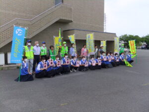 交通安全運動 お知らせ 2022.07.11 交通安全運動期間に入りました。今日は生活委員会の皆さんが、光井コミュニティセンターでの交通安全運動に参加しました。「手を上げて横断歩道を渡ろう」と、小学生をリードして積極的に活動していました。