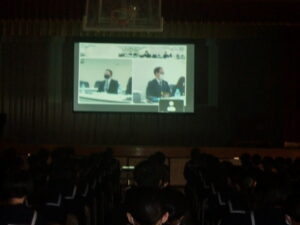 光井小中が共同で取り組んできた通学路の安全マップ作りについて、1年間の活動をまとめたものを伊藤先生と小学校の髙森先生の2人が、文部科学省(東京)からZOOM配信しました。これは、光井小中の取組が全国的に高く評価されたもので、児童生徒の合同登校や、地域・保護者の方々とのコミスク活動などいろいろな活動が結集したものです。昨日行われた配信の際は、全校生徒が体育館に集合して発表の様子を見守りました。発表終了後には大きな拍手が起こりました。これからもこの取り組みをさらに発展させていきたいものですね。
